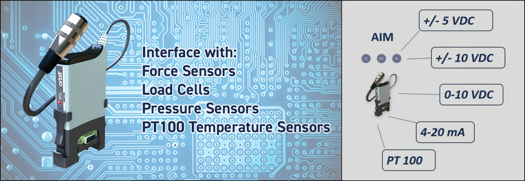 permite que la red Orbit® interactúe con una gran variedad de sensores que tienen salida de tensión o de corriente. Los sensores típicos que se pueden conectar son:
