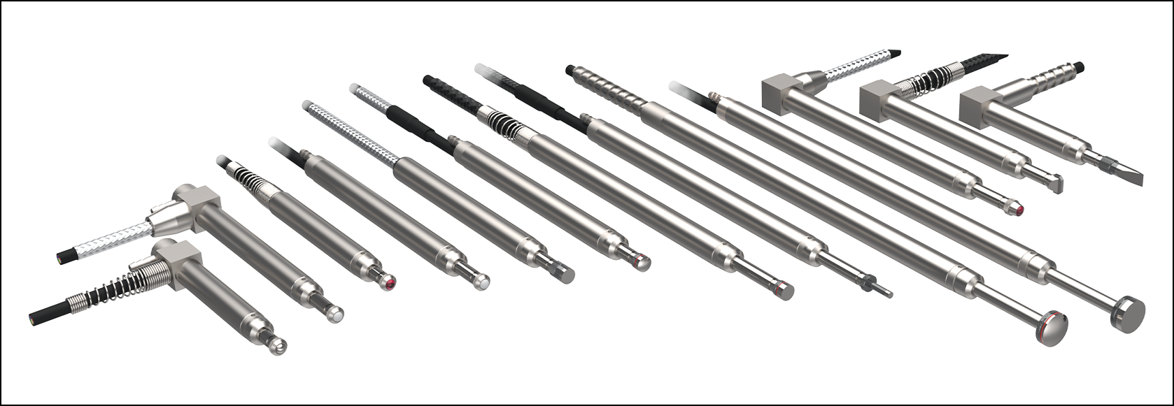 Los palpadores de tacto ultradelicado tienen una punta de presión muy baja por lo que resultan una alternativa viable a los sensores sin contacto en muchas aplicaciones. Gracias a las distintas puntas disponibles en rubí y nailon, estos palpadores se suelen usar en cristales, cauchos, obleas de semiconductores y otros materiales delicados.